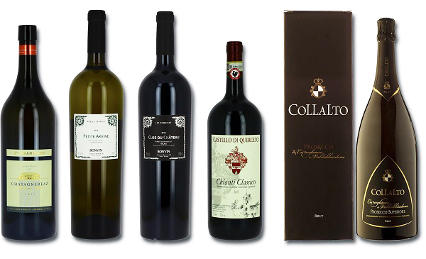 Magnum de Chasselas, Petite Arvine, Pinot-Merlot, Chianti et Prosecco.